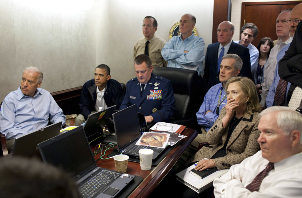 One of Obama’s campaign promises was to capture/kill Osama bin Laden. This picture is the culmination of that pledge. But when he entered the Situation Room to follow the mission in real-time, he grabbed a spot like it was a mid-level manager meeting. Brigadier General Marshall Webb got up from his seat at the head of the table, but Obama told him to stay for Webb was running point as Special Forces were flying under the radar towards a nondescript compound in a foreign country.