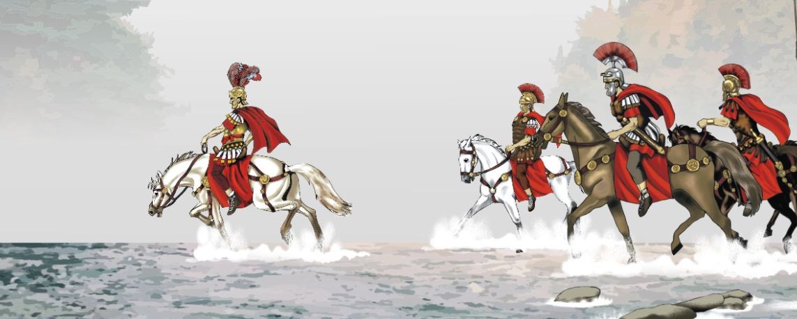 The model is based on the historic event when Caesar contemplated bringing his troops into Rome to not only claim the role of conquering hero but ruling emperor as well. Bringing his troops back home was not allowed by the senate and to do so was to declare a coup. So the model in this case would look like: