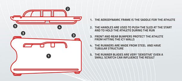 Where a luge looks like a tiny sleigh, the skeleton looks like a beefed-up cafeteria tray. It’s wider and heavier than the luge and for some reason, the sliders think it’s a good idea to lie on their stomachs and go down the track face first.