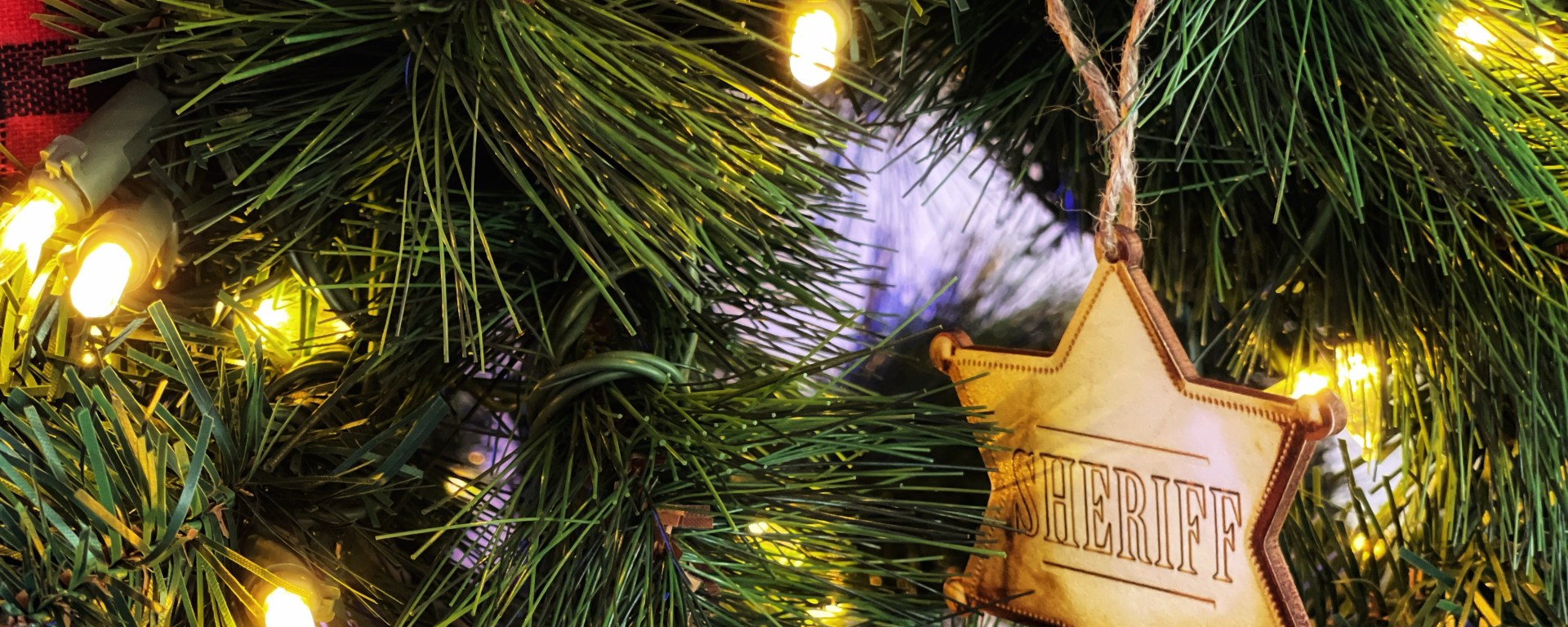 My walk takes me to a room filled with artificial Christmas trees. Each tree is sponsored by a merchant and each merchant has a raffle box next to the tree.