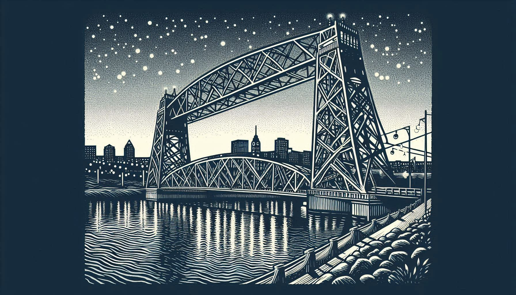 When it was built in 1905 the bridge had a rarer design – a gondola. Hanging from 300 foot wire cables, an open steel cage moved from shore to shore ferrying wagons, pedestrians and those fancy new automobiles. But as the years rolled on, the gondola could not keep pace with the booming activity.  By the roaring 20’s nobody had time for a swinging bridge. As far as Duluth was concerned gondolas were for canals of Venice and the future Vegas casinos. Duluth was a modern city in need of a modern bridge. So in 1929 it was modified to its current design.