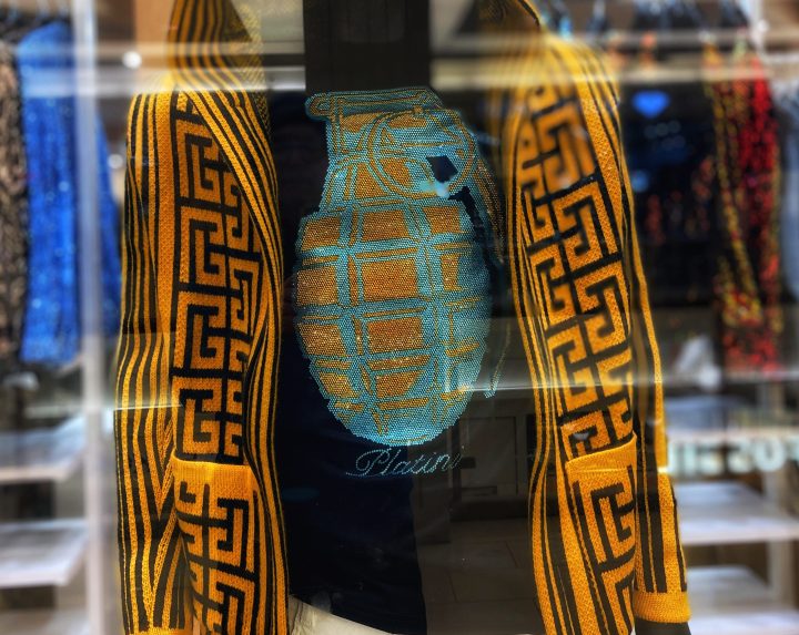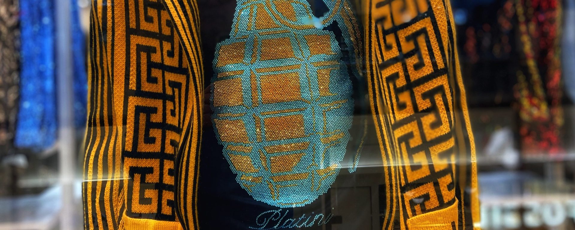 8:55pm: Walking past Nordstroms. In the window display is an array of children’s Christmas sweaters. One has a dinosaur wearing a Santa hat with a caption that reads: MERRY REXMAS!